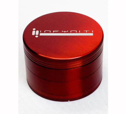 4 Piece metal grinder from Infyniti in various colours. These 4 piece grinders are sure to do the job every time. Tried and true, simple but hard working. Red variant.