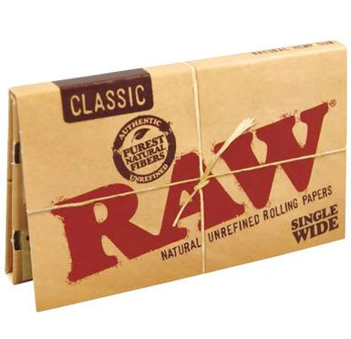 RAW Classic is where it all began. The introduction of RAW Classic changed the smoking landscape forever by introducing smokers to high quality, truly naturally unrefined papers that allow you to enjoy your smoke as nature intended! RAW is crafted from vegan, unbleached plant fibers and finished with the purest natural tree sap gumline. RAW paper is made from natural plants with zero burn additives. Each leaf is watermarked with a proprietary criss-cross steam imprint that helps prevent runs and maintain a smooth, even burn. 100 leaves per pack.