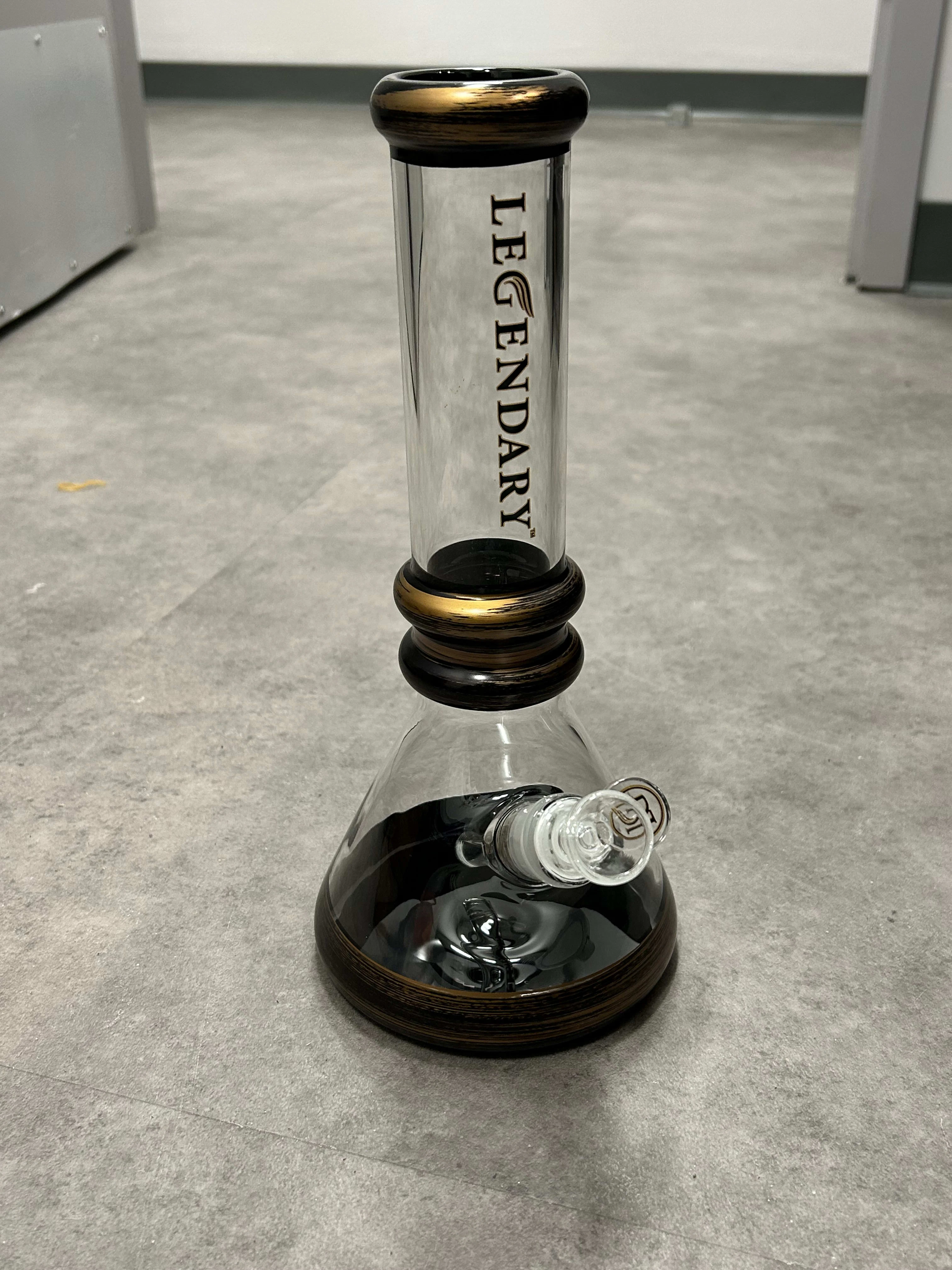 Specifications: -Height: 12 inches -Glass Thickness: 5mm – sturdy and built to last -Wide beaker base for enhanced water capacity and stability -Made from premium borosilicate glass -Includes matching downstem and bowl